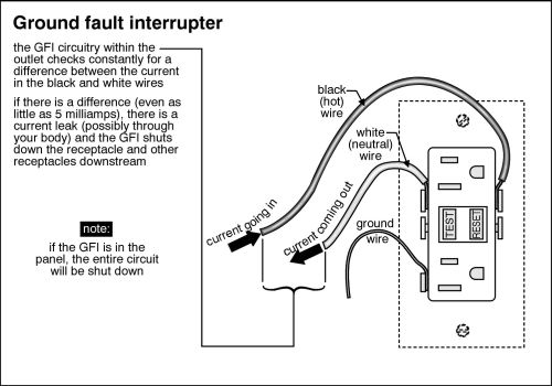This means that if you become a conductor for electricity to travel through your body, the outlet detects that less current is returning on the neutral side (because it is going through you), and it will shut off the power through the outlet within a fraction of a second. This could very well save your life. As explained earlier, when water is part of the equation, you can become a much better conductor, and the risk increases.
