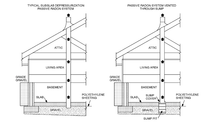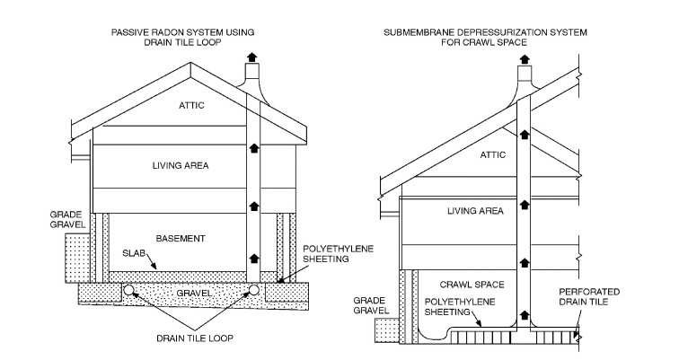 - Some type of passive radon mitigation system must be installed, depending on the configuration of the home.