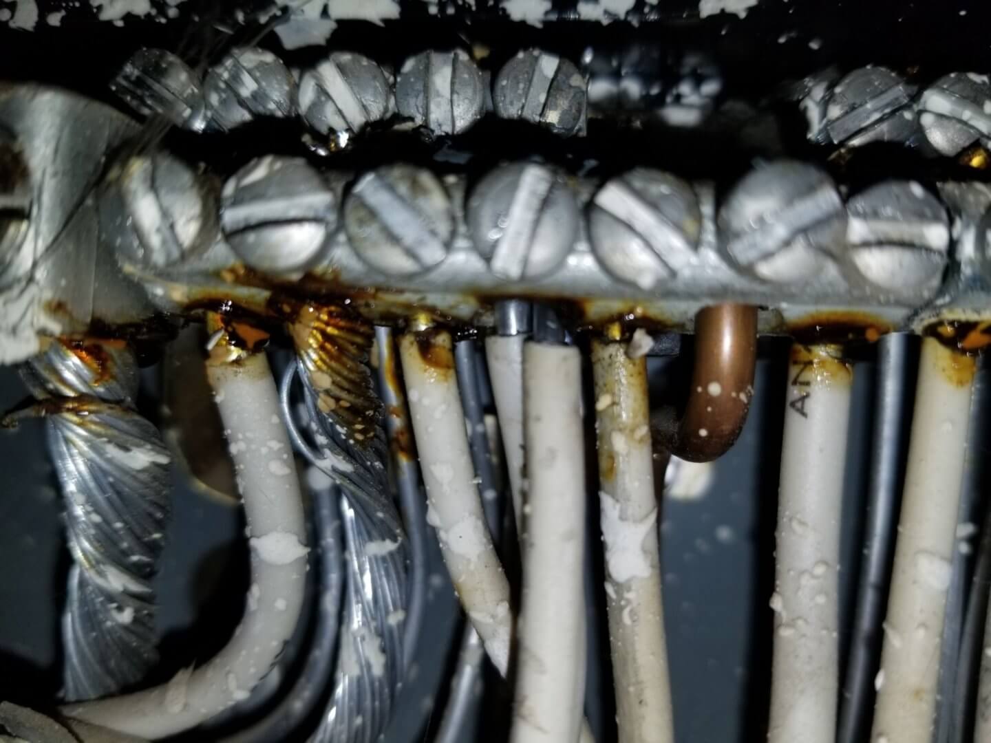 This exposed wiring can develop oxidation and corrosion when the metal is exposed to the air. If the aluminum wire connections become loose, this can disrupt the electrical flow to these connection points.