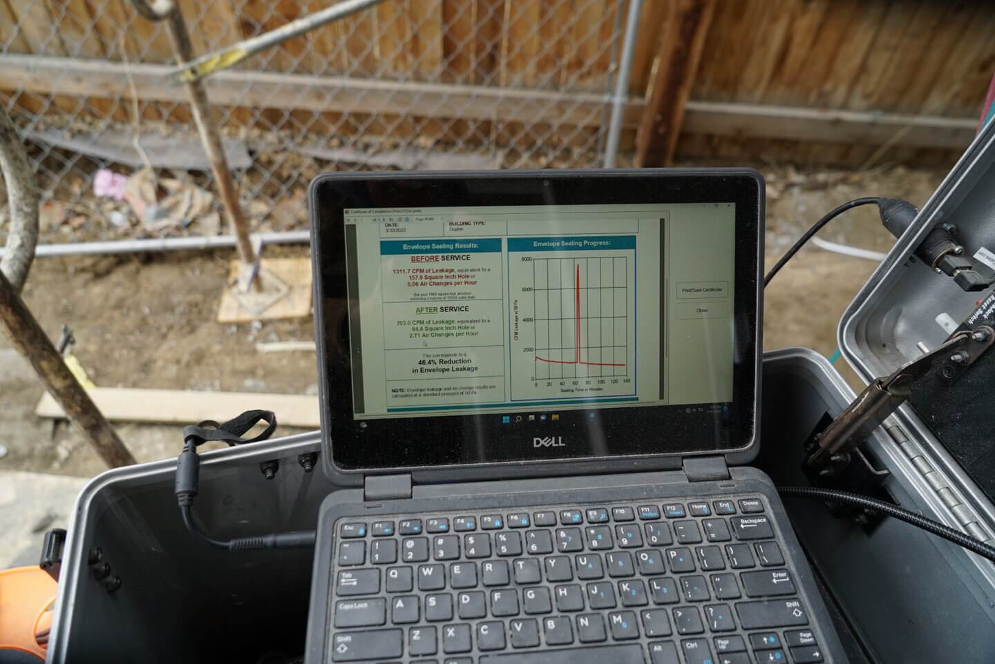 A computer hooked to the blower door shows how well the product is sealing over time while it is being applied.