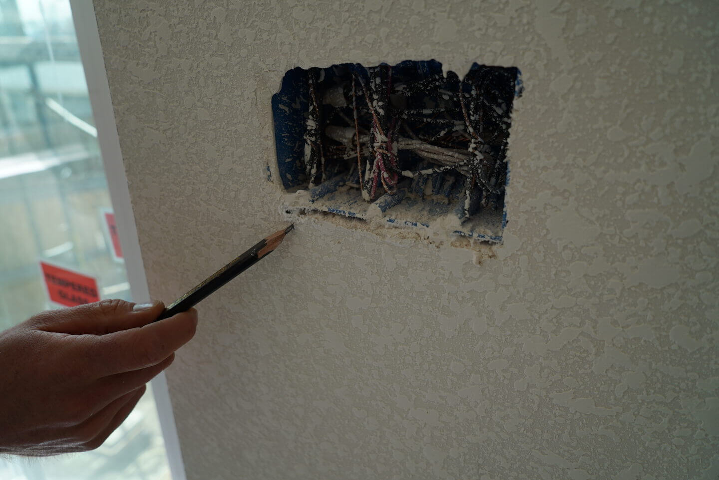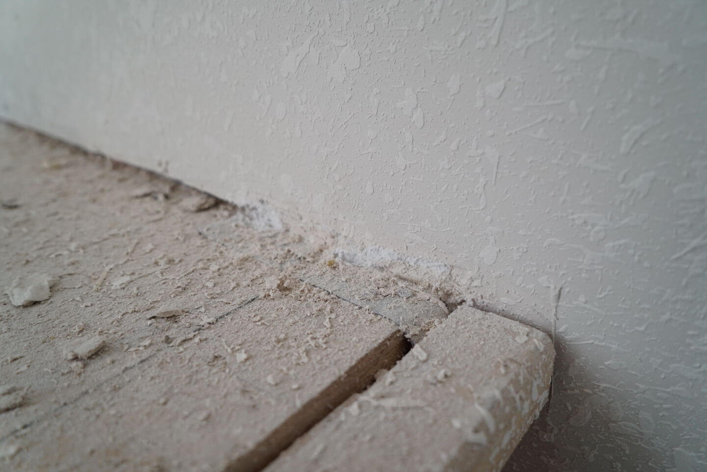 AeroBarrier sealing a large gap between the subfloor and drywall on a share wall between two duplex units.