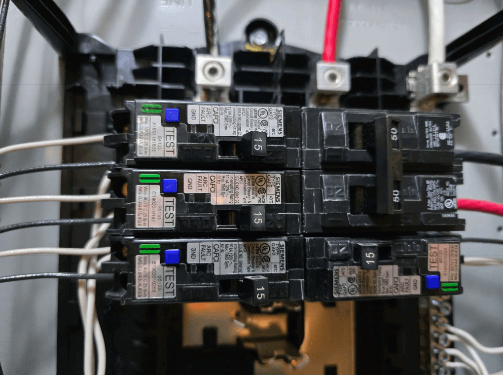 We will also test AFCIs and GFCIs when they are present on the breakers. However, many older panels do not have ACFIs, and GFCIs are commonly found directly on outlets within the house.