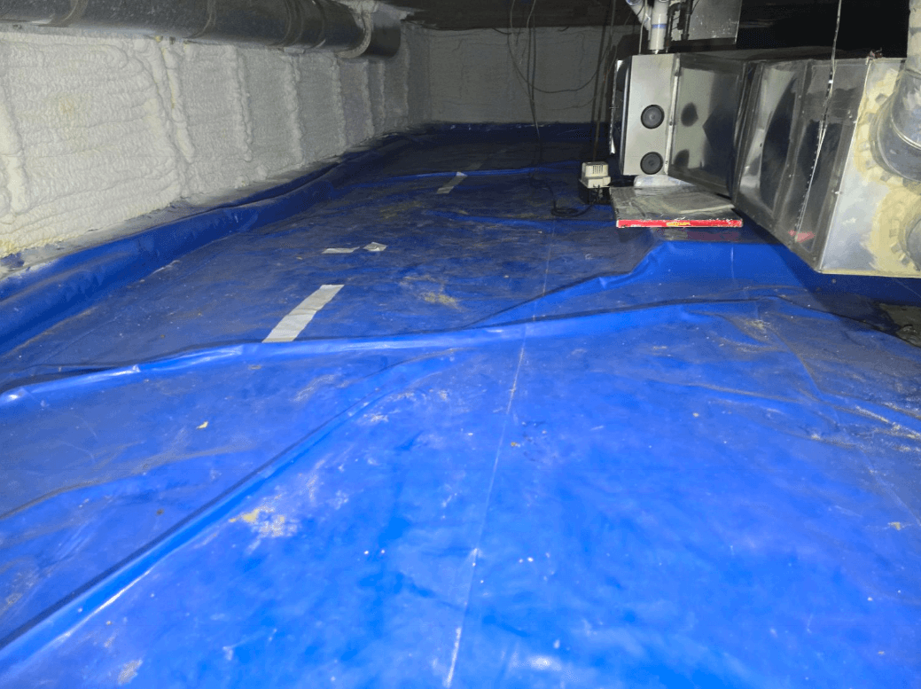 The vapor barrier is a crucial element in a crawlspace. It provides added protection to the floor system from moisture or dampness that can enter from ground. So our inspectors definitely want to see one these in the crawlspace! The inspector will make note of any damage or defects, as well as missing barriers.