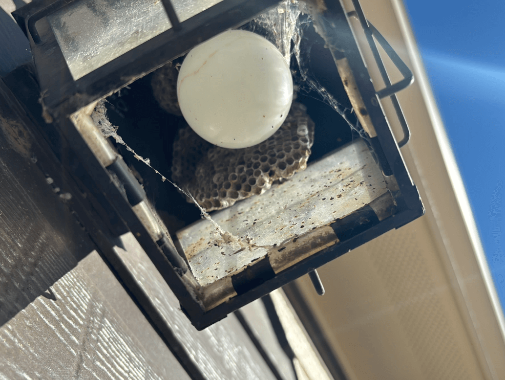 Wasps – It is very common to see wasp nests a the exterior of homes, especially under overhangs and soffits. This is generally a maintenance item, and we will recommend removal from a pro, as needed.