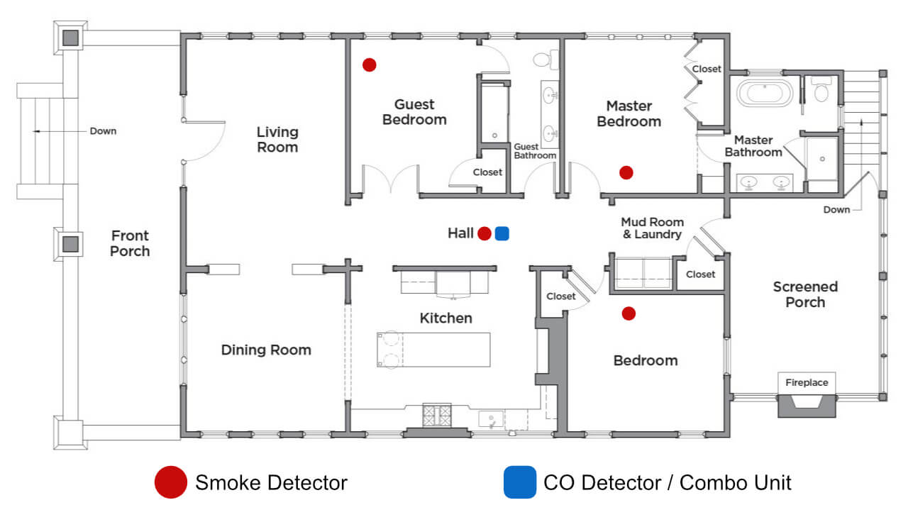 The smoke detectors are fairly straightforward, but the CO can be confusing. If all of the bedrooms are right next to each other, you can just have one unit outside the bedrooms. But if there are bedrooms in the basement and the main floor, there will need to be a CO detector outside the basement rooms, and another outside the main floor rooms.