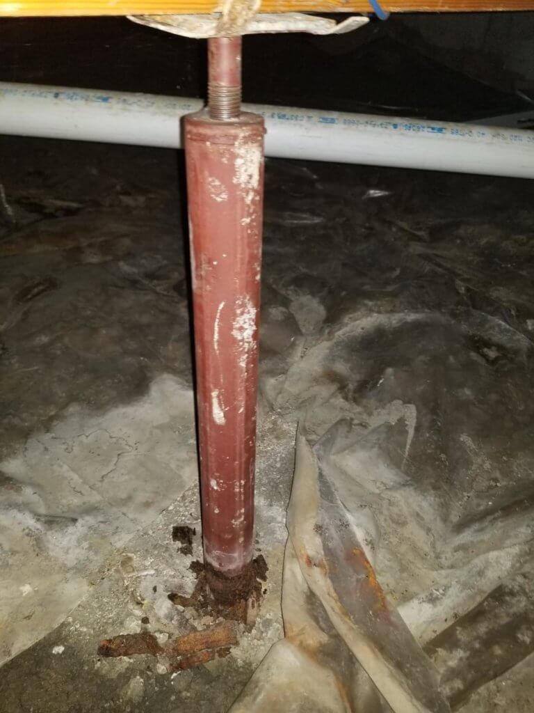 Safe to say the flooding in this crawlspace did not treat these steel screw jacks very kindly. A big repair was needed at this home.