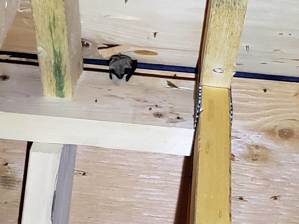 There’s a BAT! Bats in the attic are somewhat common, but they always give you a scare when you see them. This one, however, appears to be minding his own business.