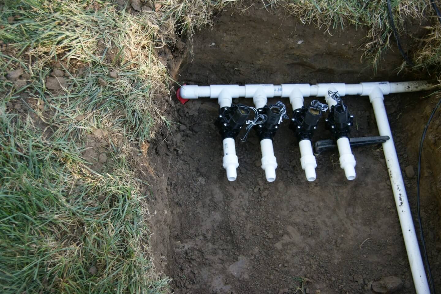 The manifold of a sprinkler system. Image sourced from: https://ctirrigation.com