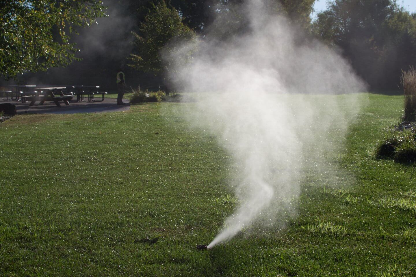 Sprinkler head being blown out. Image sourced from: blog.petersoncompanies.net