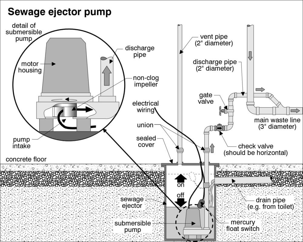 The wastewater is pumped out of the tank and up into the main residential waste line, which subsequently travels to the main city sewer line or a septic tank. The pump will continue to work until the float reaches a desired point below the threshold.