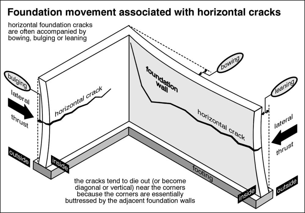 Inspecting Structure - horizontal foundation cracks