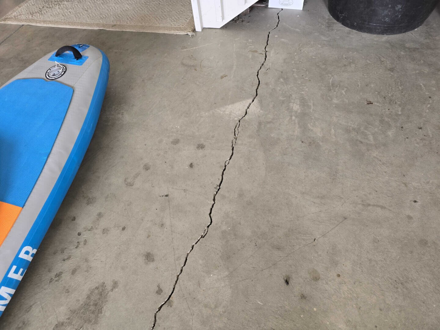The inspector is going to be looking down at the concrete slab, as well. Often cracks in the slab, such as the one below, can indicate that settling has occurred.